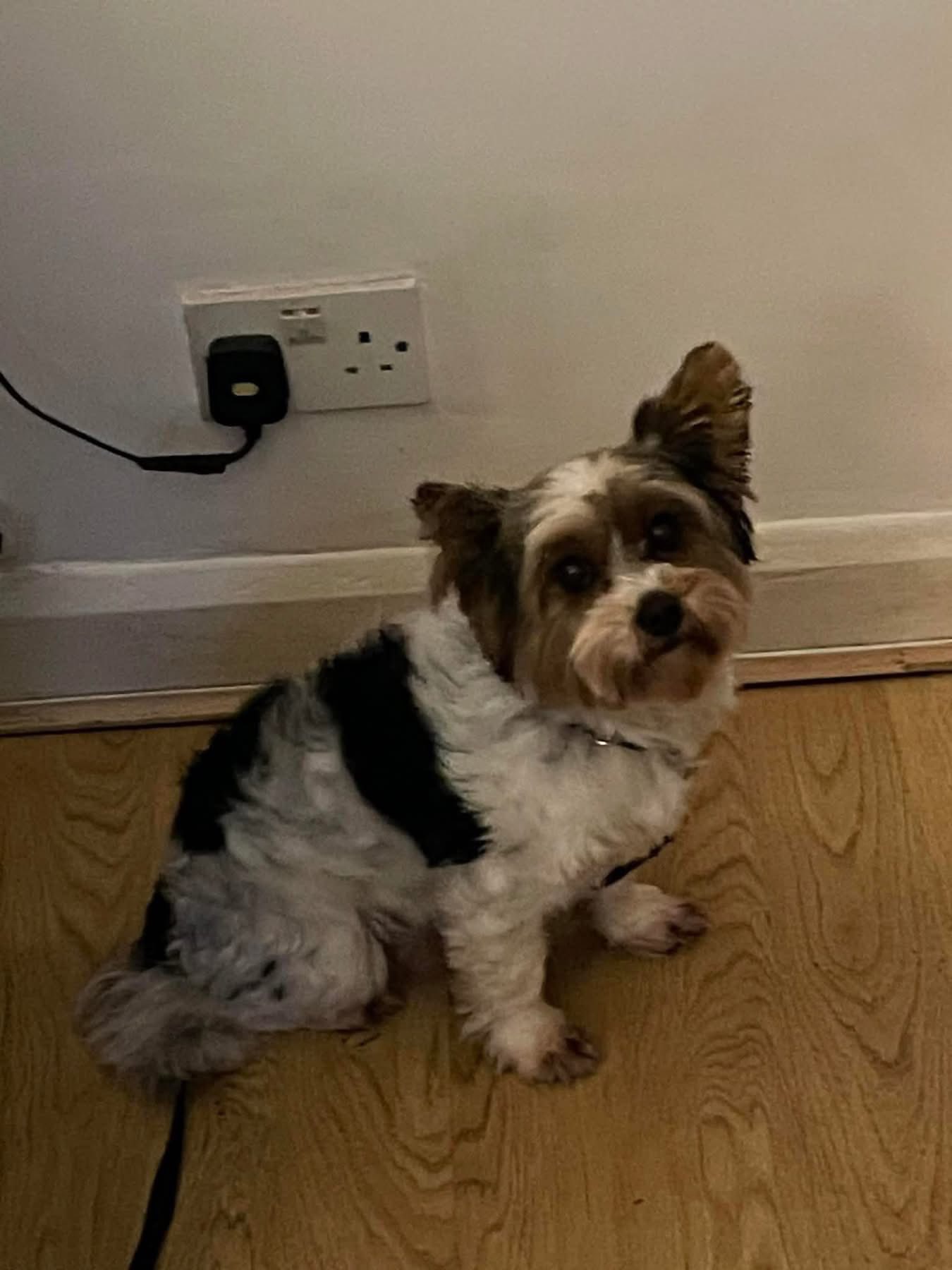 Archie is 3 years old. Not cat friendly. Can live with or without other dogs. Children 10 plus Archie is a small three year old Biewer Terrier who was recently surrendered to us due to him not coping well in the environment with a cat and a child. Archie can be a nervous little chap at first when he meets you but soon wants a lap to sit on and likes a cuddle and a stroke. He is good on walks and will greet dogs in a sociable manner, Archie can be rehomed with another dog or on his own. He does not travel well and will be sick if fed before . He does not get on with cats and is anxious around young children so will need a home with no children under the age of ten. He needs to be fed grain free dry food as he has a possible grain allergy.