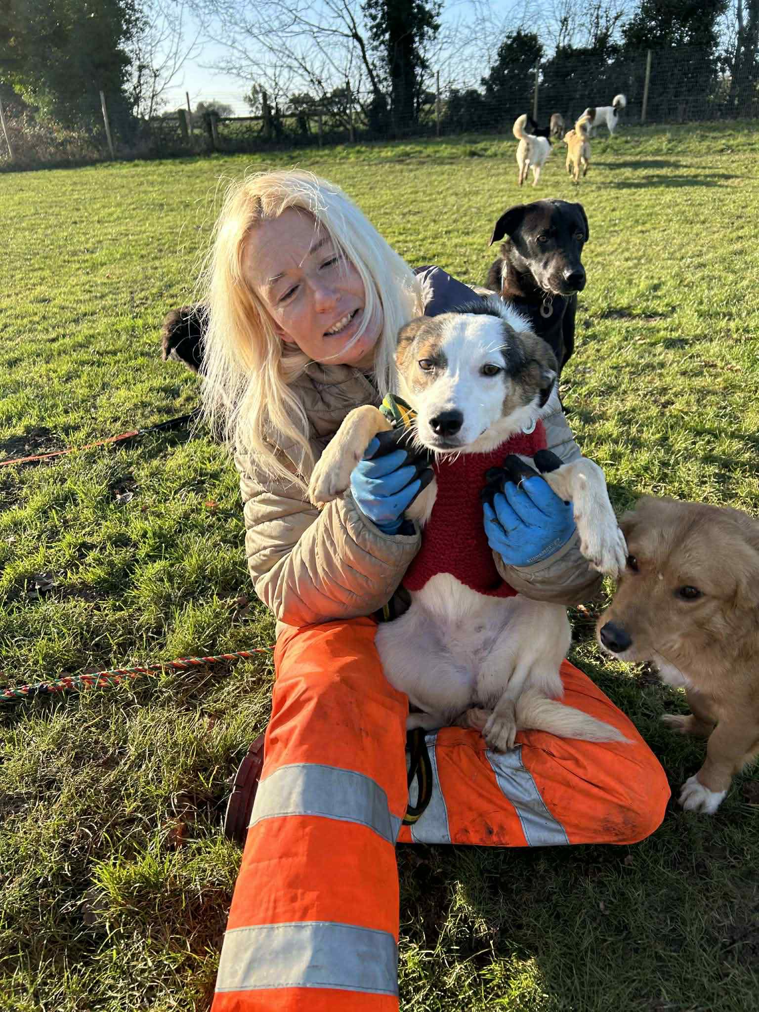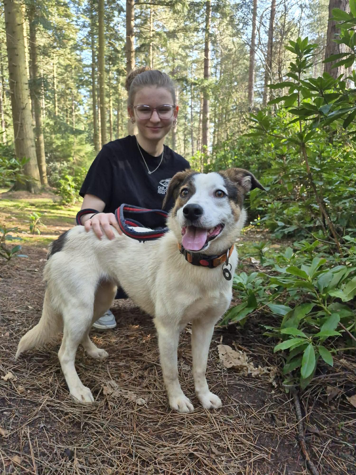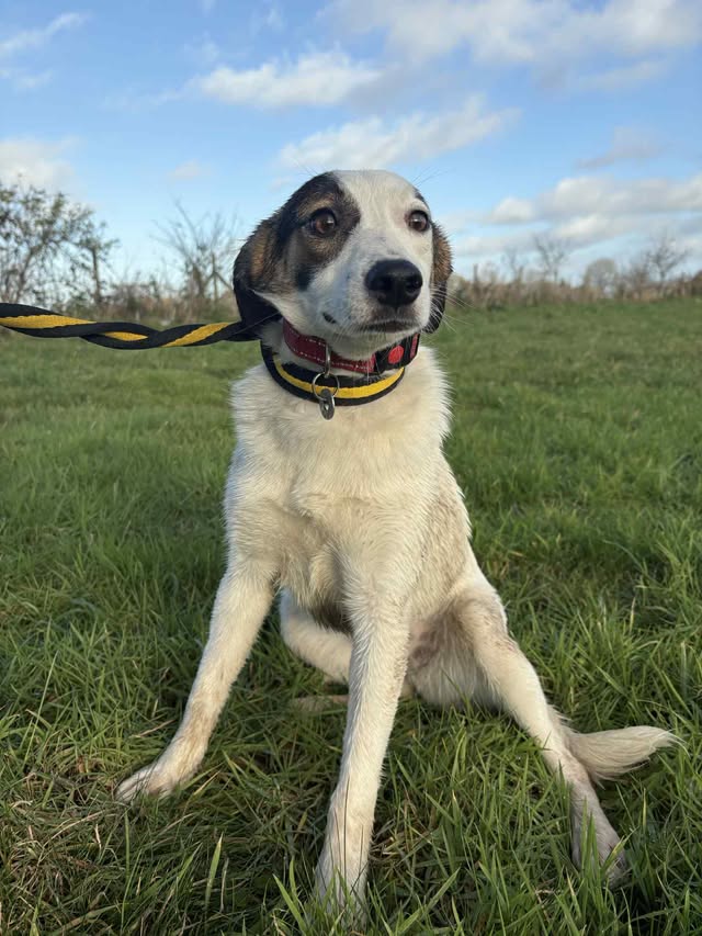 Carrie is a one year old (March 2025) smallish crossbreed. Ignored the cat. Can live with or without other dogs. Adult home needed. We initially met Carrie on a trip to Botosani public shelter in Romania. She is such a sweet girl and really looked for fuss when we entered the pen. Carrie is wary of new people and needs to be given time to trust. She is more wary of men than women, but when the love kicks in she really does adore you. Carrie would be happy with or without a resident dog in her forever home and is okay with the safe rescue cat. She will need an adult family. She loves her walks and is a sweet and loyal companion.