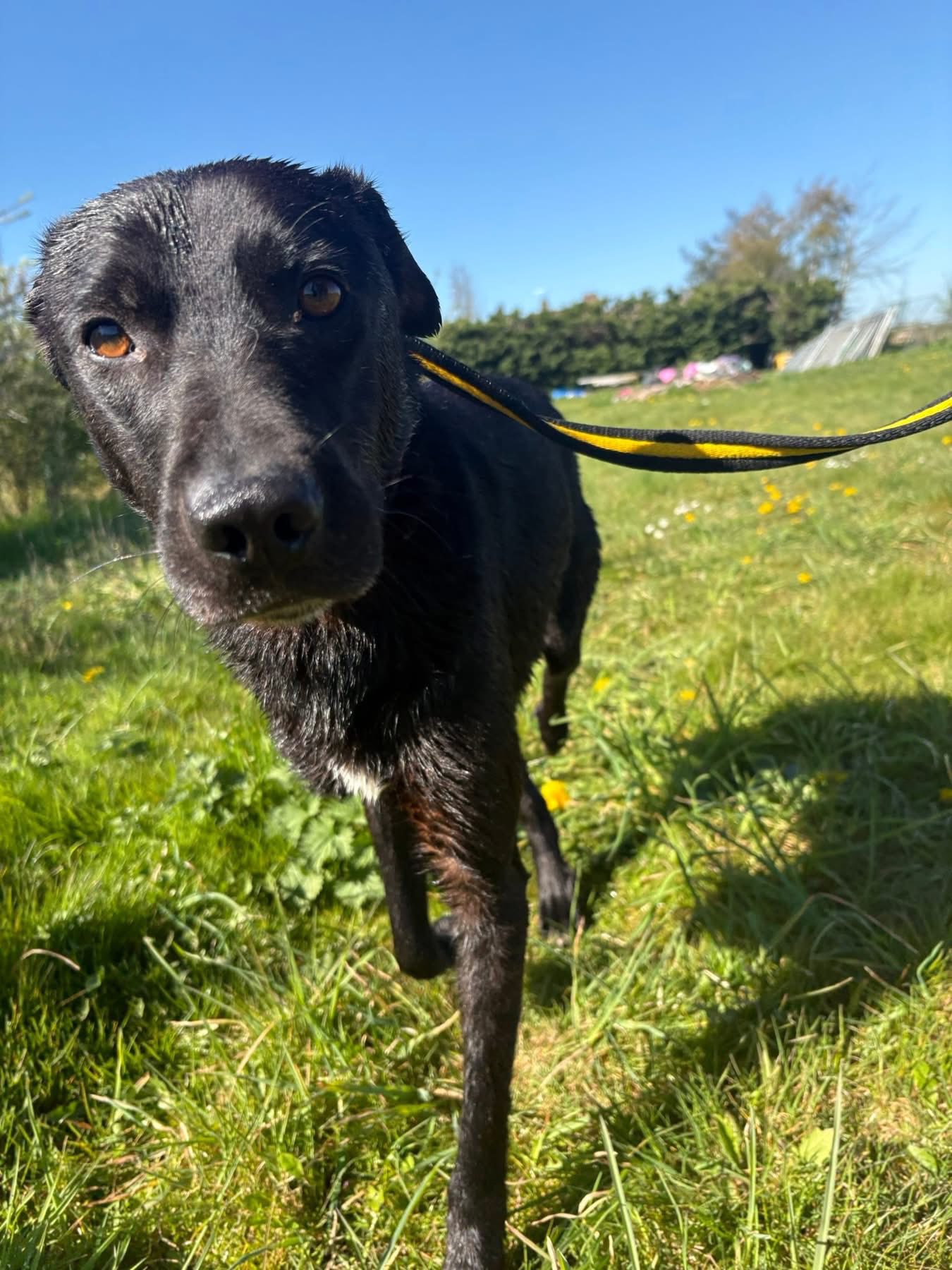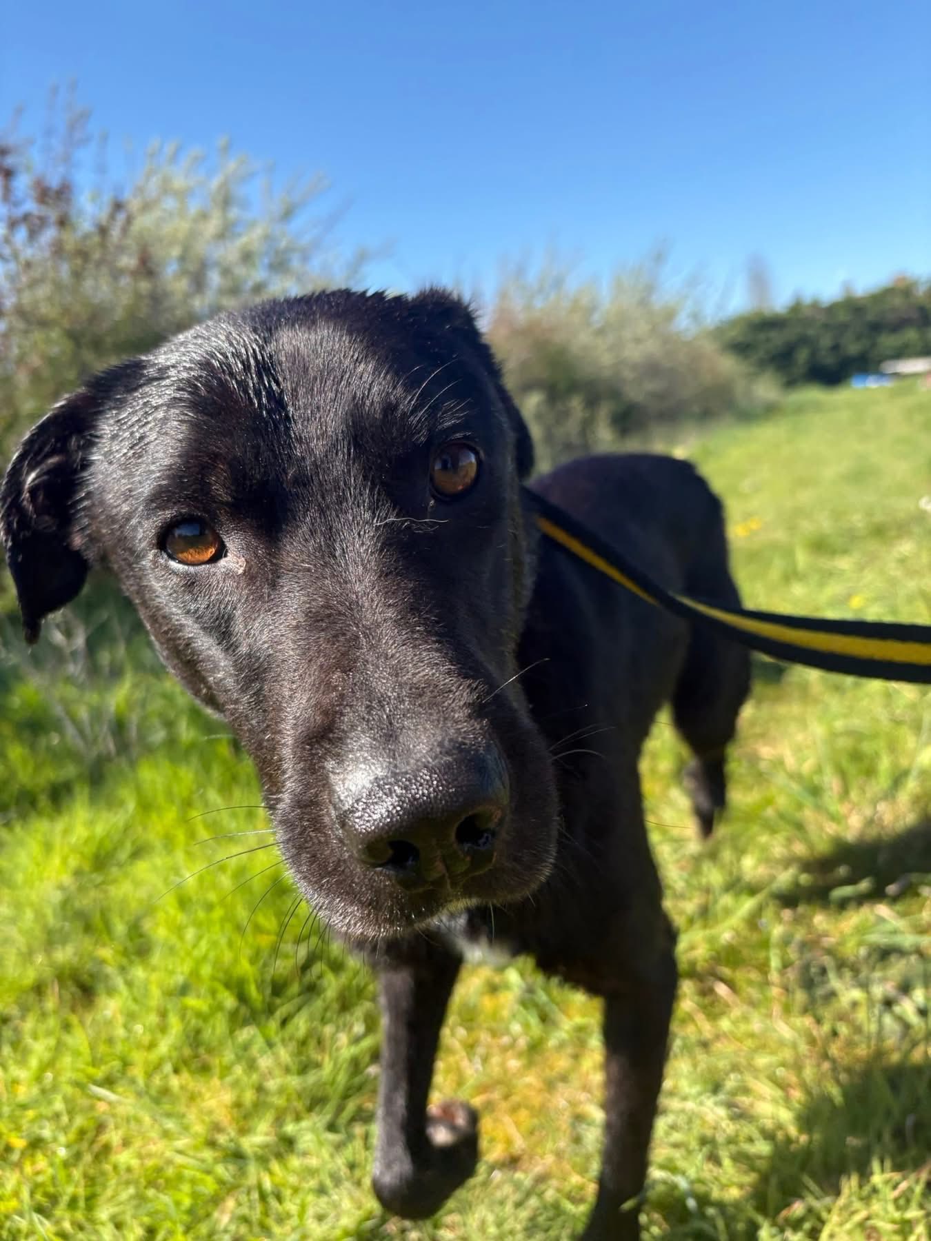 Manuel is a medium sized Labrador crossbreed aged around three years old. Wary of the safe rescue cat. Need resident dog. Adult only home. Manuel was abandoned as a puppy in the Botosani public shelter in Romania and tragically he never got picked and therefore grew up there. He came into our care in May 2025 but wasn’t confident enough to be put up for adoption until now. The filthy concrete floors and metal bars were all he’s ever knew until he recently traveled to us at two years old and the stimulus deprivation has led to his general lack of confidence. He takes a little time to bond with new people but once his trust is earned he seeks comfort from the presence of his human. He mixes well with other dogs and will need one other dog or a small pack in his forever home. He’s a little wary of the safe rescue cat and will need an adult home environment. Manuel will need an adopter with patience and experience in building a dogs trust and confidence, he’s a bit of an over thinker and a worrier. He’s still wary of new people and new situations but he’s ready to move on and learn more with a new family.