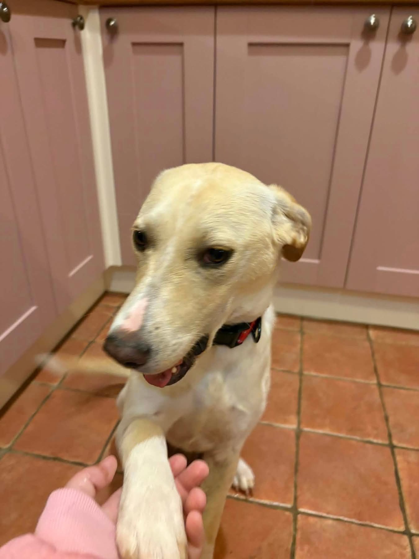 Talia is a medium sized crossbreed who is coming up to a year old. No cats. Can live with or without other dogs. Children 10+. She originally came into our care last year as a pup from the Botosani shelter in Romania. She was swiftly adopted but was recently returned through no fault of her own. Her fosterer says she is a sweet girl who loves walks, cuddles and snoozes. She is able to live happily on her own or with other dogs. Just a playful puppy who loves to give you her paw. She is a wonderful addition to any household and just needs someone who will commit to forever with her this time around.